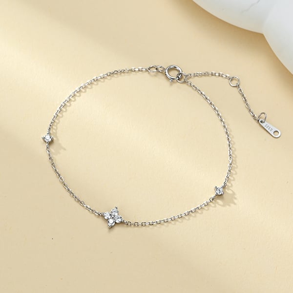 以四瓣花造型綴飾細緻銀鏈,閃耀柔光間展現溫婉氣質與浪漫魅力。