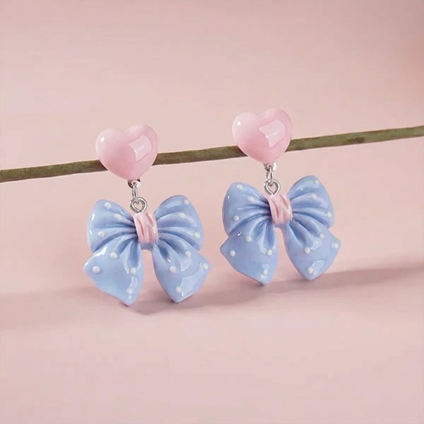 「愛心糖霜蝴蝶結」無耳洞兒童黏貼式耳環以立體蝴蝶結為主角,粉嫩色澤搭配珍珠糖霜般的白色點點,營造出甜點系飾品的夢幻氛圍。上方愛心耳釘設計更添可愛氣息,是喜歡粉色風格小女孩的夢幻選擇。
