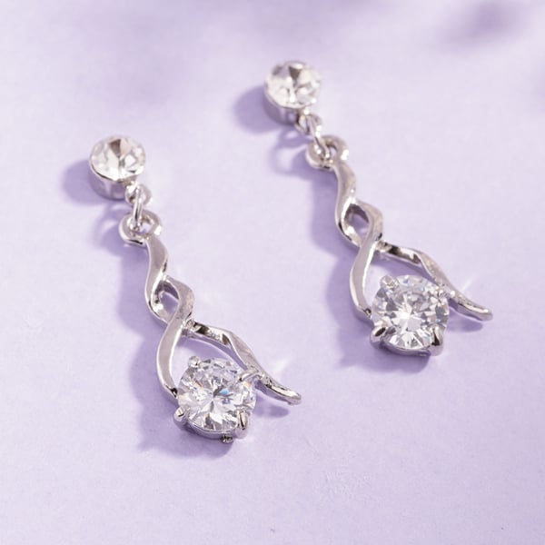 「高雅奢華耀眼水鑽」耳環以流線金屬交錯設計,勾勒出優雅輪廓,搭配閃耀紫色水鑽,展現奢華又不失柔美的氣質。整體設計帶有立體感與精緻度,是晚宴造型或正式場合的絕佳搭配。
