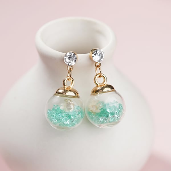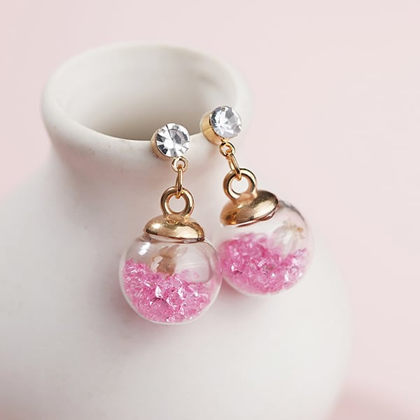 | 商品名稱 | 彩色水晶透明玻璃球乾花 無耳洞黏貼式耳環 |