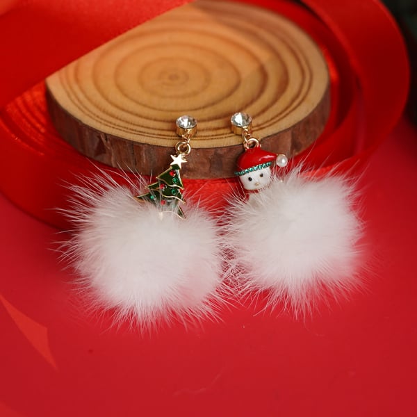 聖誕樹雪人毛球 耳針/無耳洞黏貼式耳環 場景展示
