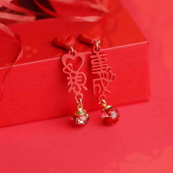 以紅色心形與祝福文字結合,搭配亮麗吊墜設計,展現溫馨與喜慶氣息,祈求心想事成,是傳遞祝福與愛意的完美飾品選擇。