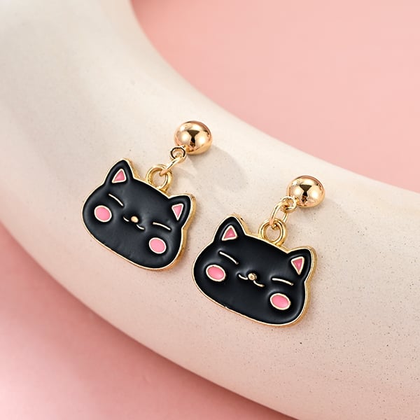 「胖胖小黑貓耳環」以圓潤貓臉為主角,微笑表情搭配粉嫩腮紅,彷彿隨時準備撒嬌,是療癒系飾品的代表之一。黑色琺瑯與金邊勾勒出可愛又有個性的風格,讓人一眼就愛上牠的魅力。