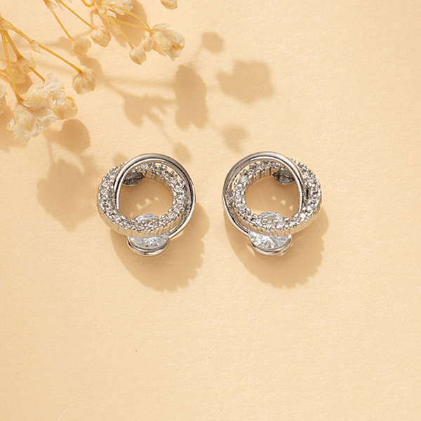 以優雅的幾何圓環為設計主軸,線條相互交織堆疊出豐富層次。表面採用密釘鑲嵌工藝,滿鑲細緻的小鋯石,下方更懸掛一顆晶透主鑽,隨著光線折射出令人屏息的璀璨火光,展現名媛般的華麗氣場。