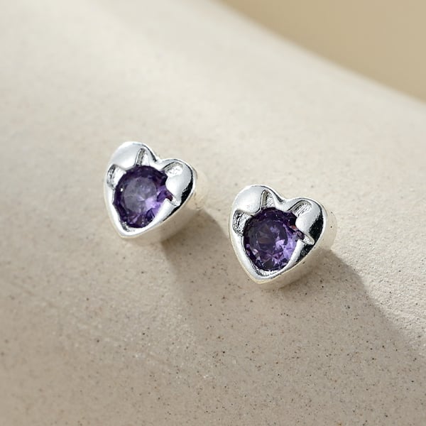 經典的愛心造型,以俐落的銀色金屬包邊,中心鑲嵌一顆剔透的鋯石。提供三種迷人色系:「純淨白」百搭亮眼、「深邃藍」沉穩知性、「神祕紫」浪漫優雅。極致簡約的設計,輕輕點綴耳畔,散發出甜美可愛的鄰家女孩氣息。