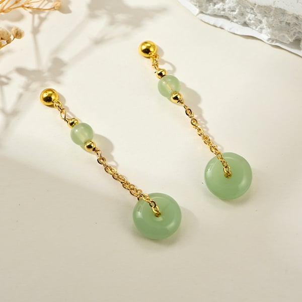 融合東方古韻的平安玉環耳環,精緻金屬鍊子與珠珠搭配碧綠圓潤墜飾,象徵平安順遂。提供耳針款與無耳洞專用黏貼式選擇,並採用高品質 3M醫療級雙面膠,佩戴穩固舒適,是提升日常穿搭質感與傳遞祝福的完美首選。