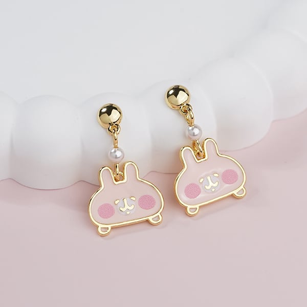 卡娜赫拉的小動物 甜美珍珠兔兔 無耳洞黏貼式耳環