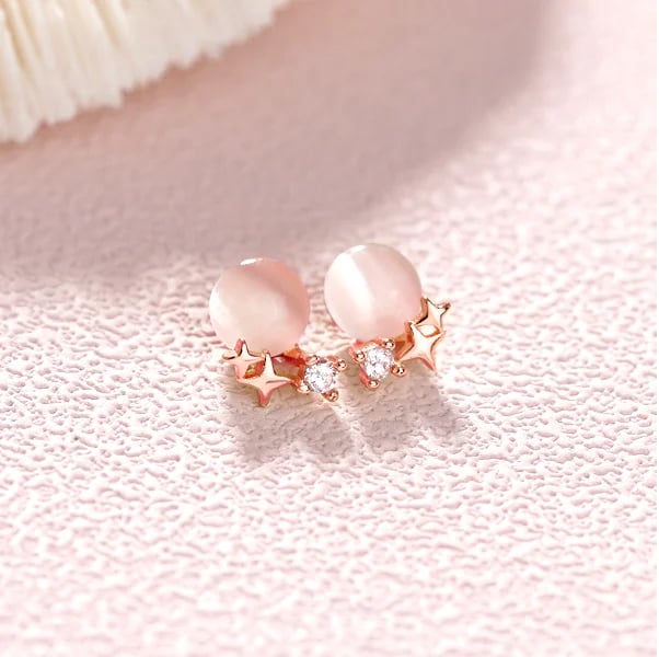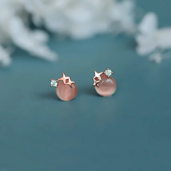 像夜空中閃爍的滿月與星星,這款耳環以柔和的貓眼石為主體,搭配閃爍水鑽點綴星星意象,呈現夢幻又浪漫的月夜氛圍。不論日常或約會穿搭,都能為整體造型注入一絲神祕光彩。